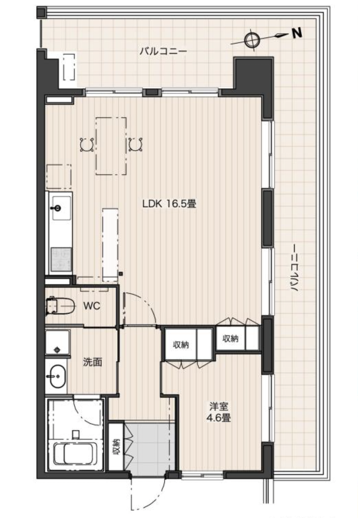 1LDK (LDK16.5畳. 洋室4.6畳)