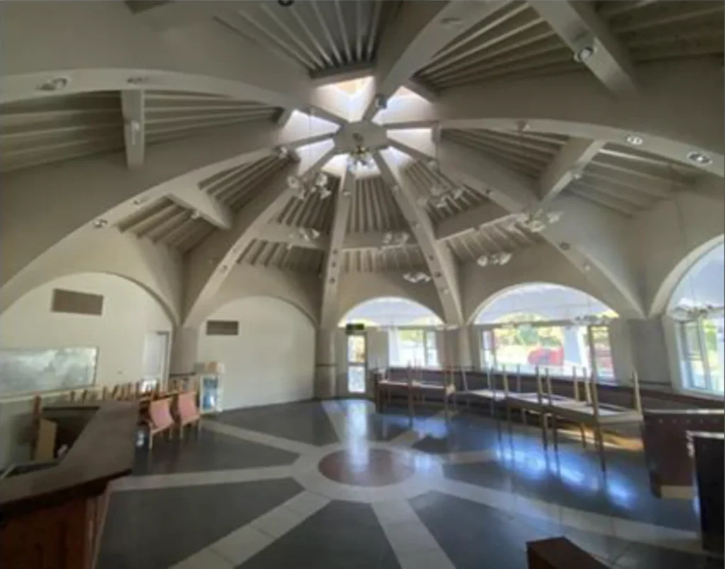 南欧リゾートを思わせる外観と、特徴的な円形ロビー空間